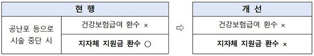 이밖에도 난임부부에 대한 의료비 지원을 확대하는 바, 오는 11월부터 난자 미채취, 수정가능한 난자 미확보 등으로 시술이 중단되더라도 건강보험 급여와 동일하게 지자체도 시술횟수 차감없이 시술비를 지원하도록 개선·시행한다.