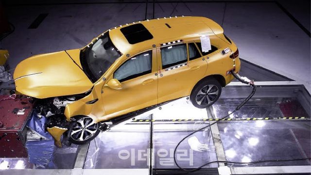 [진델핑겐(독일)=이데일리 박민 기자] 지난 22일 찾은 독일 바덴뷔르템베르크주 진델핑겐에 있는 메르세데스-벤츠의 자동차 안전 기술 센터(TF). 차량 가격만 1억원을 훌쩍 넘는 메르세데스-벤츠의 전기 세단 EQS 모델이 눈 깜짝할 사이 배리어(장애물)와 부딪히며 ‘펑’ 소리가 났다. 순간 눈이 부실 정도로 강렬한 조명 수십여대에 불이 켜졌고, 사고 차량의 전,후, 좌,우부터 하부까지 초당 수천장의 사진을 찍어댔다. 충돌지점까지 70m 구간을 시속 64km로 달려와 장애물과 부딪힌 벤츠 EQS는 차량 앞 부분이 휴지조작처럼 구겨졌고, 바닥에는 차량에 떨어져 나온 여러 부품들이 흩어졌다. 이번 충돌 테스트를 담당한 율리아 힌너스 엔지니어는 “충돌 순간 안전 시스템이 어떻게 작동하는지, 에어백이 언제 펼쳐지는지, 차량 내 탑승자의 안전공간은 어떠한지 등을 다양하게 평가한다”며 “이번 충돌 테스트도 정확히 의도한 대로 결과가 나왔다”고 말했다.