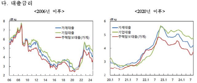 비은행의 경우 예금금리와 대출금리가 모두 하락했다. 수신금리는 상호저축은행(0.09%포인트, 3.73%)을 제외하고 신협(-0.05%포인트, 3.55%), 상호금융(-0.06%포인트, 3.38%), 새마을금고(-0.07%포인트, 3.55%) 모두 하락했다. 대출금리의 경우 상호금융(0.01%포인트, 5.25%)을 제외하고 저축은행(-0.65%포인트, 11.04%), 신협(-0.03%포인트, 5.42%), 새마을금고(-0.20%포인트, 4.93%) 모두 줄었다.