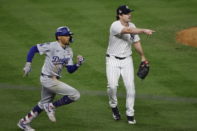 그런데 5회 다저스가 드라마를 썼다. 4회 투구 중 손가락에서 피가 난 양키스 선발 투수 게릿 콜은 5회 초 선두 타자 키케 에르난데스에게 우전 안타를 맞았다. 4회까지 노히트를 이어가던 그의 첫 피안타였다. 이후 양키스 수비진이 흔들렸다. 중견수 저지가 토미 에드먼의 뜬공 타구를 놓쳤고, 이어 윌 스미스가 유격수 앞 땅볼을 쳤다. 그런데 유격수 볼피가 3루로 향하는 에르난데스를 저격하다 송구 실책을 범했다.