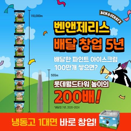 지난 5년간 배달한 벤앤제리스 파인트 아이스크림 100만 개를 쌓으면 롯데월드타워 높이의 200배 (세컨드유레카 제공)