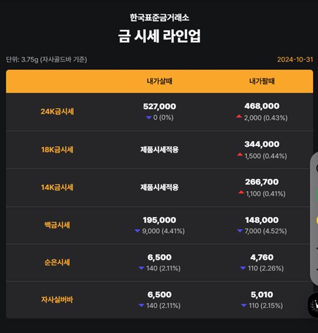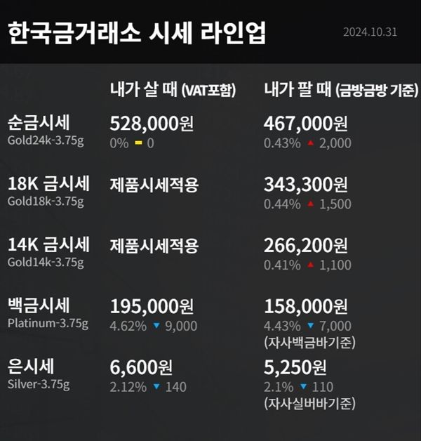 순금(24K) : 매입가 52만 8000원 / 매도가 46만 7000원