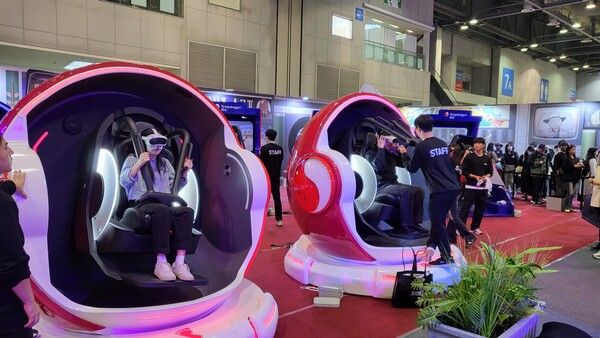 건너편에 위치한 ‘붕괴: 스타레일’ 또한 ‘원신’에 못지않은 인기와 독특한 체험 공간으로 방문객들의 시선을 끌고 있다. 특히, 별도 유료 체험 공간으로 마련된 ‘페나코니 IMPRESSION’ 체험 공간은 실제와 같은 곡예비행을 즐길 수 있는 XR 체험 기구를 마련하며 ‘페나코니’에 어울리는 독특한 풍경을 자아내고 있다.