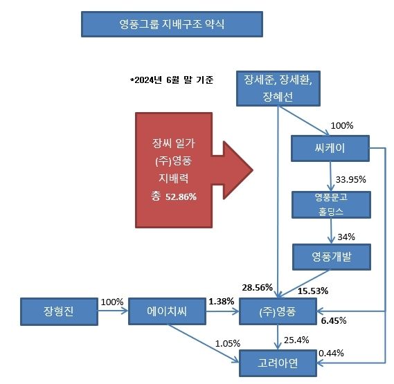 영풍그룹은 공정거래위원회가 대그룹 순환출자해소를 권고하면서 2017년부터 지배구조를 대대적으로 손보기 시작했다. 7개의 순환출자고리가 있었는데 이를 해소하기 위해 씨케이를 활용했다. 장 고문이 씨케이 지분을 정리한 때와 맞닿아 있다.