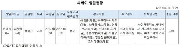 ◇ 씨케이 장 고문이 초기 출자, 10여년째 단독 이사로 경영