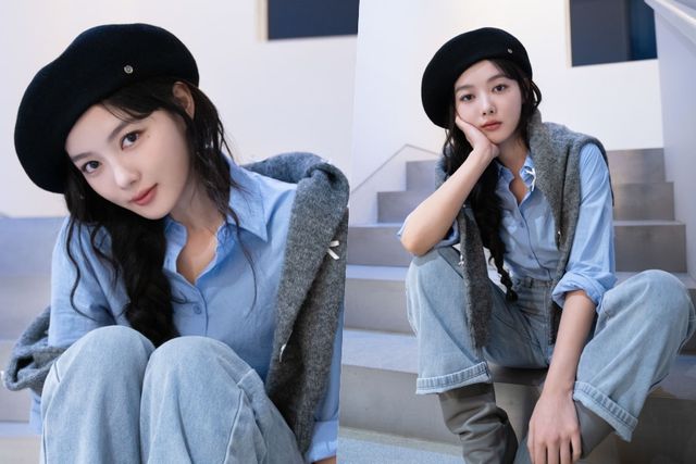 공개된 사진 속 김유정은 블루 셔츠에 데님팬츠를 입고 있는 모습이다. 어깨에 카디건을 걸친 채 블랙 베레모를 쓴 김유정은 계단에 앉아 포즈를 취하고 있다. 시크한 눈빛으로 턱을 괸 채 카메라를 응시하는가 하면 요염한 눈빛을 보내는 등 김유정의 다채로운 일상 매력이 시선을 강탈한다.