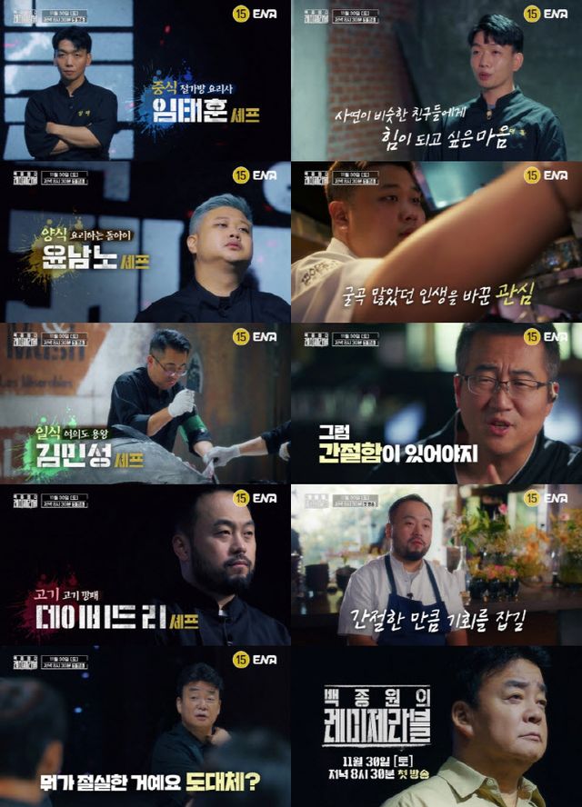 11월 30일 첫 방송되는 ENA 신규 토요 예능 ‘백종원의 레미제라블’은 짧지만 강렬한 서사를 담은 도전자들이 처음이자 마지막으로 찾아온 인생역전의 기회를 잡기 위해 혹독한 스파르타식 미션과 백종원이 사람에게 진심을 다하는 모습을 보여주는 진정성이 담긴 성장 예능이다. 강렬한 캐릭터, 인생역전 서사, 휴먼 다큐의 묘미를 모두 담아낸 특별한 리얼리티의 탄생을 예고한다.
