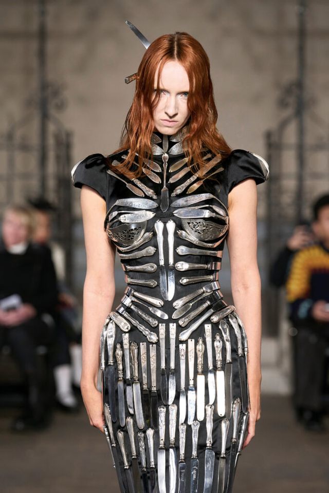 잡동사니 코어를 가장 먼저 눈여겨본 것은 소위 ‘패셔니스타’라 불리는 셀러브리티들이다. 지난 8월, 영화 <보더랜드> 시사회에서 1백2개의 숟가락을 엮은 호다코바의 슬리브리스 톱을 입고 등장해 화제를 모은 케이트 블란쳇은 2024 토론토 국제영화제에서도 그의 숟가락 장식 재킷을 선택해 자신의 패션 미학을 대중에게 각인했다. 카일리 제너, 에마 코린, 그레타 리 또한 공식 석상에 호다코 바의 옷을 입고 등장해 그의 팬임을 인증했다. 이 외에도 안전핀으로만 제작한 메종 마르지엘라의 금색 드레스 차림으로 그래미 시상식에 나타난 마일리 사이러스, 잔 다르크가 연상되는 튀르키예 디자이너 딜라라 핀디코글루 (Dilara Findikoglu)의 나이프 드레스를 입고 <바비> 시사회장에서 시선을 모은 하리 네프, 그리고 인스타그램을 통해 다양한 신인 디자이너의 독창적인 잡동사니 코어 룩을 홍보하는 줄리아 폭스 등 저마다 자기만의 방식으로 이 엉뚱한 매력의 패션을 지지하는 중이다. ‘코어’라는 필승(?) 수식어가 붙었음에도 다소 난해한 비주얼의 이 패션이 리얼 웨이에서 활용될 가능성은 낮아 보인다. 그럼에도 불구하고 이 트렌드가 유의미한 이유는 지금 패션계가 가장 주목하는 ‘지속 가능성’의 새로운 방향 성을 제시하기 때문이다. 지속 가능한 패션을 위한 노력은 이전에도 있었지만 잡동사니 코어는 좀 더 유쾌하고 노골적인 방법으로 지속 가능성에 대한 질문을 던진다. 누군가에게는 ‘골동품’, 나아가 쓰레기로 여겨지는 물건을 가공하지 않고 있는 그대로 활용해 하이패션으로 승화하는 식으로 말이다. 만약 누군가 이 패션이 존재하는 의미를 묻는다면, 호다 코바의 말로 대답을 대신하고 싶다. “패션계에는 더 이상 다른 ‘디자이너’가 필요하지 않아요. 충분히 있습니다. 지금 필요한 것은 경계를 넓히는 더 많은 ‘혁신가’입니다.” 우리가 지난 패션 역사에서 수없이 목도한 혁명의 순간이 지금, 또 한번 찾아온 듯하다.