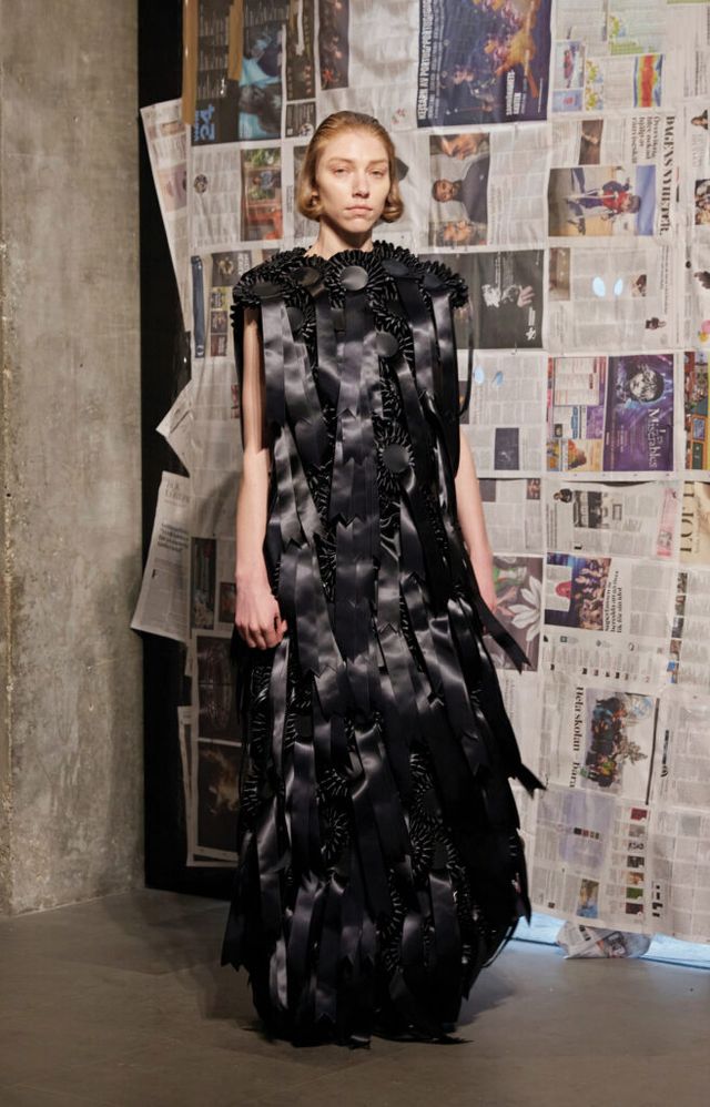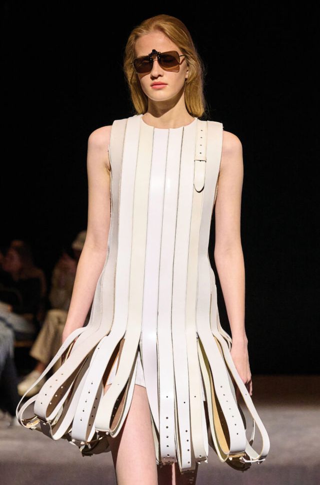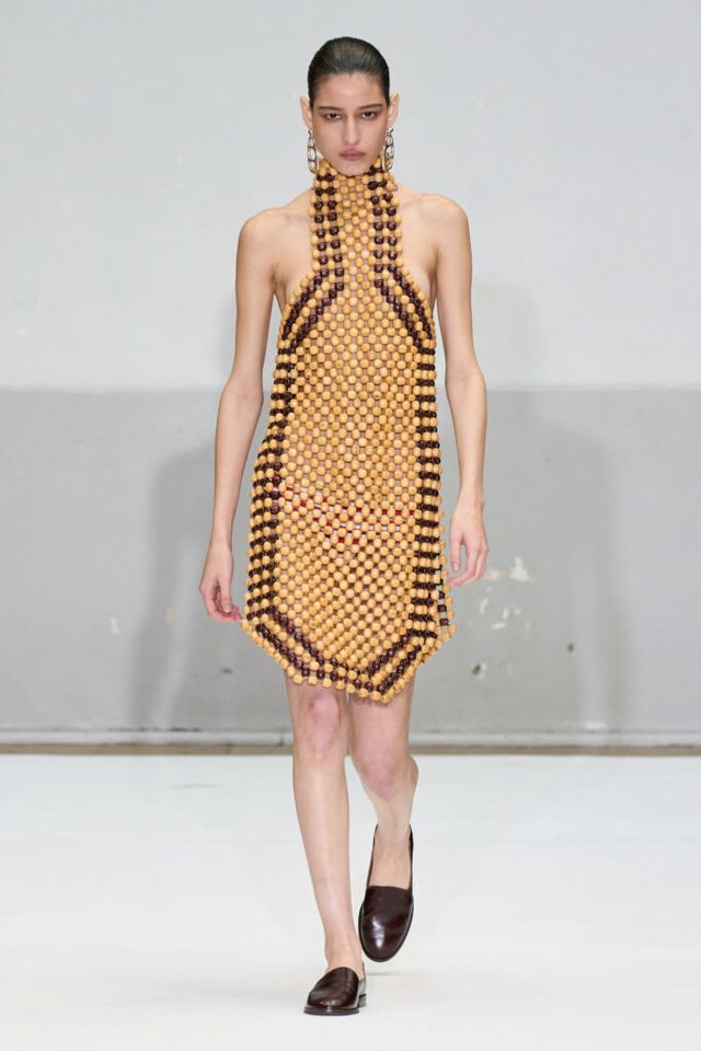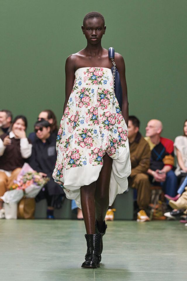 호다코바를 필두로 이 괴짜스러운 흐름은 런웨이 곳곳에 등장하고 있다. 럭셔리 하우스의 빈티지 제품을 재구성해 새 생명을 불어넣는 디자이너로 명성을 얻은 또 다른 LVMH 프라이즈 후보, 듀런 랜팅크(Duran Lantink)의 2025 S/S 쇼에는 중국 식당의 문발을 통째로 뜯어 온 듯한 원피스가 등장했다. 호다코바 역시 지퍼, 단추 등 동대문종합시장의 의류 부자재 코너에서 볼 법한 자재를 활용하며 자신의 정체성을 유지한 컬렉션을 이어갔다. 이러한 행보를 펼친 것은 기세 좋은 신인 디자이너만이 아니다. 발렌시아가의 뎀나 바잘리아는 2024 F/W 시즌, 이베이에서 직접 선별한 1천여 개의 골동품을 초대장으로 보내며, ‘개인적인 이야기에 대한 상상력을 불러일으키고, 물건에 새로운 생명을 불어넣는다’라는 문구를 적어 동봉했다. 그리고 제품 구매 시 증정하는 더스트 백을 재구성한 톱, 수백 개의 브래지어를 이어 붙인 피날레 드레스를 런웨이에 세우며 자신이 전하고자 하는 메시지를 암시했다. 한편 ‘수공예의 왕’이라 불리는 로에베의 조나단 앤더슨은 실제 커튼을 만드는 빈티지 플라워 원단으로 풍성한 드레스를 완성했다(그는 이전에도 키보드로 만든 톱, 파티 장식에 쓰이는 리본 스커트 등으로 화제를 모은 바 있다).