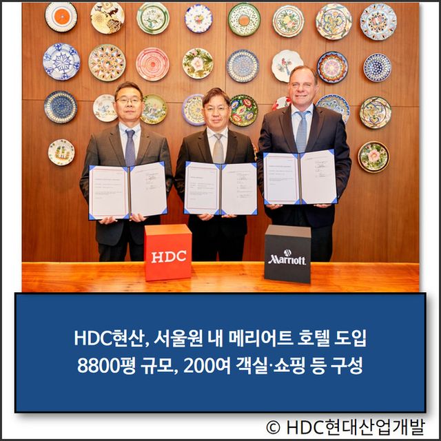 HDC현산은 메리어트와 서울원 복합건물 내 프리미엄 브랜드 호텔 도입을 위한 본계약을 체결했다고 31일 밝혔다. 메리어트 인터내셔널은 세계 최대 규모의 미국 호텔 체인으로 럭셔리, 프리미엄, 셀렉트 등 다양한 등급의 30개 호텔 브랜드를 보유하고 있다.