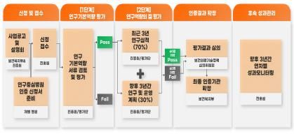 복지부는 의료기관에서 제출한 자료를 바탕으로 먼저 연구기본역량 평가(1단계)를 실시한 후 기준을 충족(Pass)한 의료기관을 대상으로 연구역량의 질 평가(2단계)를 실시하게 된다.