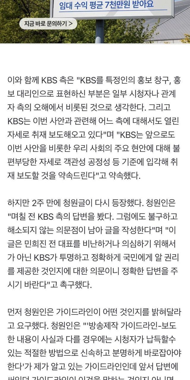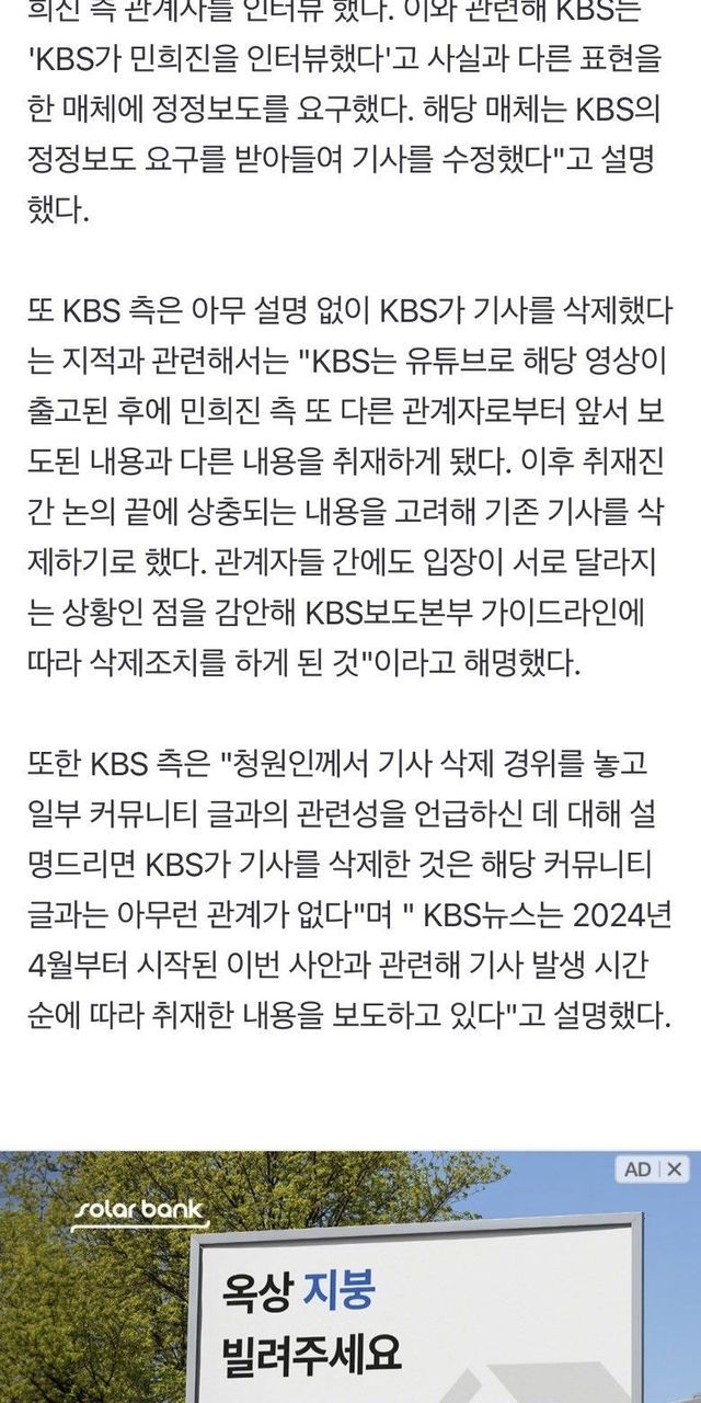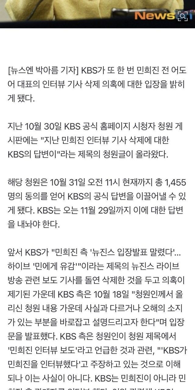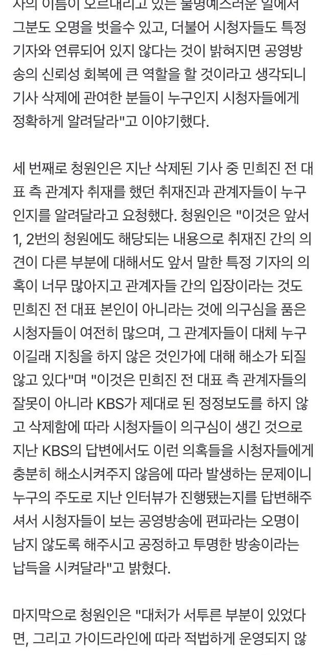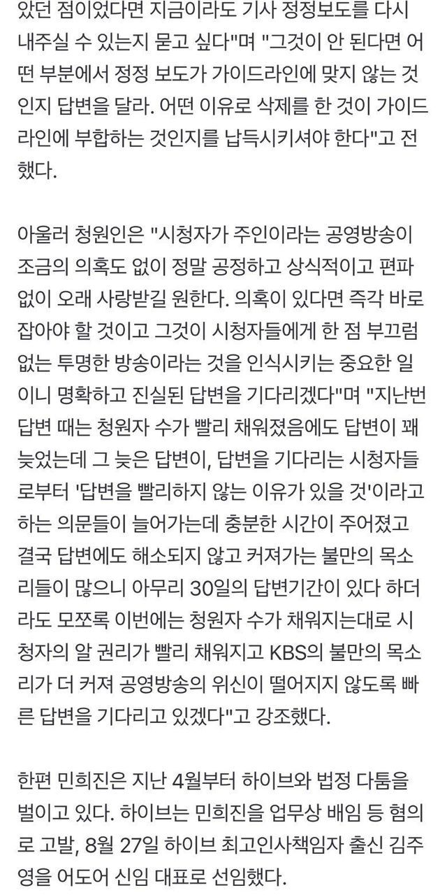“민희진 인터뷰 기사 삭제 의문점 남아” 청원, KBS 또 입장 밝힐까,,