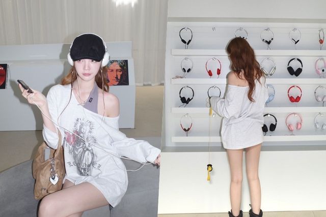 공개된 사진 속 수스는 한 사운드룸 팝업스토어를 찾은 모습이다. 홀터넥 이너웨어에 루즈핏 티셔를 입은 수스는 하의가 전혀 보이지 않는 하의실종룩으로 시선을 강탈했다. 특히 한쪽 어깨까지 드러낸 채 여리여리한 몸매를 자랑, 슬렌더 여신다운 자태로 보는 이를 매료했다.