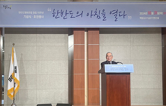 임동원 한반도평화포럼 명예이사장은 기념사에서 "한반도평화포럼은 15년 전 남북이 갈등과 반목을 일삼으며, 불신과 대결로 역주행하던 시기에 창립됐다"며 지금도 남북관계를 비롯한 동북아 정세가 어려운 때라고 진단했다.