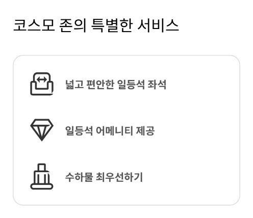 이에 좌석 배정을 희망하는 승객이 많았고, 유료 판매 요청도 많았던 것으로 전해졌다. 이에 따라 고객에게 구매 기회를 제공해 선택권을 확대하는 차원에서 코스모 존 서비스를 신설했다는 설명이다.