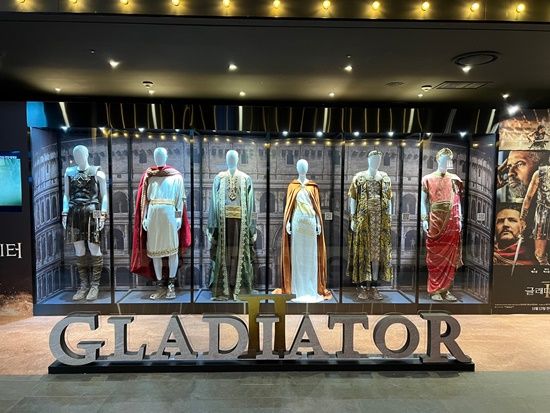 웅장한 고대 로마 제국을 생생하게 구현해 기대를 높이는 '글래디에이터 Ⅱ'가 CGV 용산아이파크몰에서 배우들이 실제 착용한 영화 의상을 직접 확인할 수 있는 특별 전시로 이목을 집중시킨다.