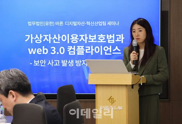 바른 디지털자산·혁신사업팀장을 맡고 있는 한서희(사법연수원 39기) 변호사는 ‘웹3.0 컴플라이언스’ 주제 발표를 통해 “가상자산이용자보호법 시행에 따라 가상자산 거래소의 이용자보호의무가 강화되고 있다”고 말했다.