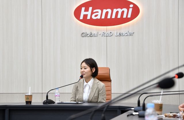 임주현 한미약품그룹 부회장이 26일 경기도 화성시에 위치한 한미약품 연구센터에서 소액주주연대와 만나 간담회를 갖고 있다. 사진=한미약품 제공