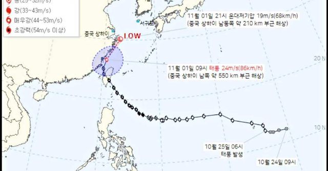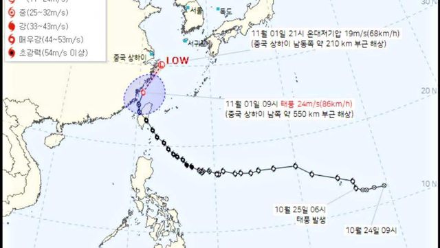 기상청은 1일 10시 기준으로 태풍에 대한 정보를 발표했다. 발표에 따르면 콩레이는 이날 오전 9시 초속 24m, 시속 86km 강풍을 동반하고 있으며, 중심 기압은 990 hPa로 측정됐다. 현재 위치는 위도 26.5도, 경도 120.6도이며, 북쪽으로 이동하고 있다. 태풍은 12시간 이내에 온대저기압으로 변질될 것으로 예상된다.