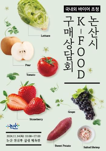 오는 11월 14일 논산시 전천후 실내체육관에서 개최되는 ‘2024년 논산시 K-FOOD 구매상담회’는 국내‧외에서 활동하고 있는 바이어들과 관내 농식품 기업 간 인적네트워크를 구축하고, 유통 및 수출 판로를 넓혀가기 위한 비즈니스 대회이다.