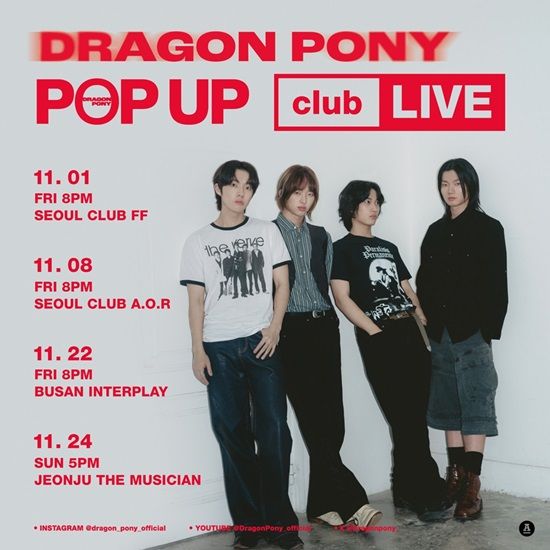 드래곤포니(안태규, 편성현, 권세혁, 고강훈)는 1일 서울 마포구 CLUB FF에서 첫 클럽 투어 'Dragon Pony POP-UP club LIVE'의 포문을 연다.