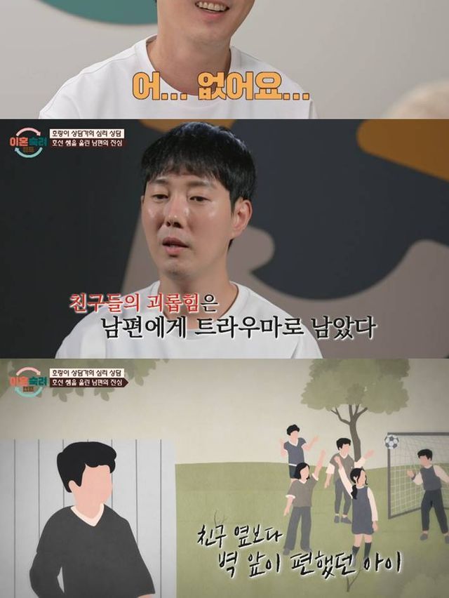 "원래 그런 사람이냐"라는 물음에 아내는 "가정 환경이 그렇게 좋지는 않아서. 아버지가 도박도 하시고, 여자문제, 폭력도 있어서 사고가 많았다. 그래서 제 자존감을 무너뜨린 것 같다"며 울먹였다.