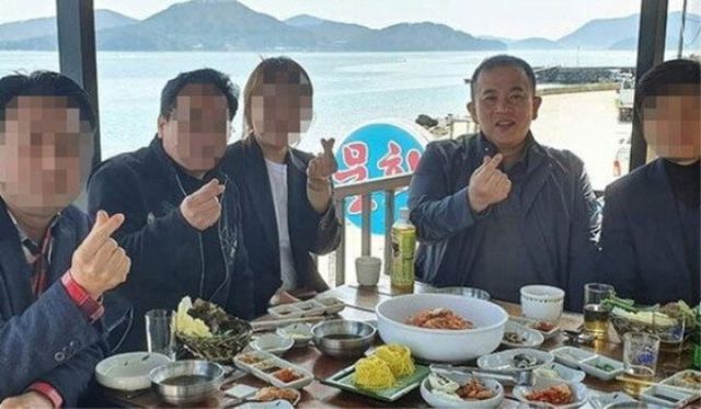 (왼쪽부터) 명태균씨 운전기사 김 아무개씨, 김태열씨, 강혜경씨, 명태균씨, 조 아무개씨. ⓒ 페이스북