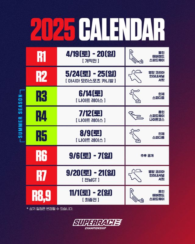 슈퍼 레이스는 1일 2025시즌 일정과 함께 바뀌는 규정을 함께 전했다.