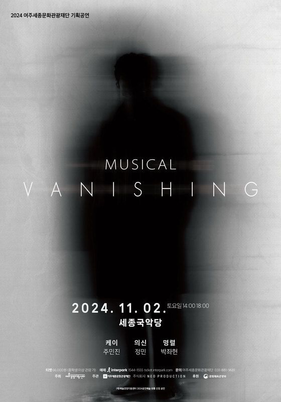 여주세종문화관광재단이오는11월2일(토),예술경영지원센터의지원사업인<공연예술유통사업>의일환으로뮤지컬‘배니싱’을세종국악당에서개최한다.