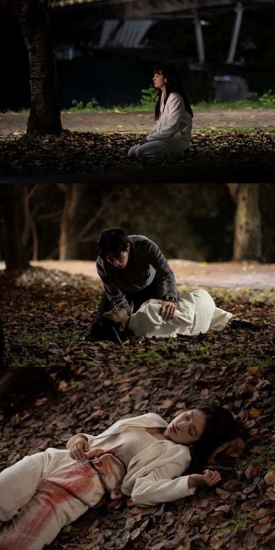 특히12회 말미 공개된13회 예고에 누군가에게 습격당해 붉은 피를 철철 흘리며 쓰러진 강빛나,그런 강빛나를 품에 안은 채“죽으면 안 돼!제발”이라고 처절하게 절규하는 한다온의 모습이 담겨 있어 시청자들의 불안감이 더욱 높아진 상황이다. 11월1일 제작진이 공개한 해당 장면의 촬영 스틸은 어둠 속 강빛나와 한다온의 처절한 운명을 오롯이 보여주며 안타까움을 자아낸다.