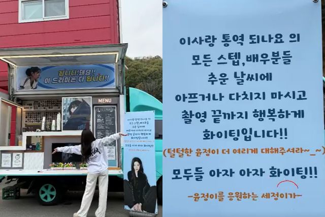 공개된 사진 속에는 '이 사랑 통역이 되나요' 촬영 현장에 김세정이 보낸 간식차 선물이 담겨있다. 김세정은 간식차에 "'이 사랑 통역 되나요'의 모든 스텝, 배우 분들. 추운 날씨에 아프거나 다치지 마시고, 촬영 끝까지 행복하게 화이팅입니다! (털털한 윤정이 더 여리게 대해주셔라) 모두들 아자 아자 화이팅"이라는 문구를 덧붙이며 각별한 우정을 표현했다.