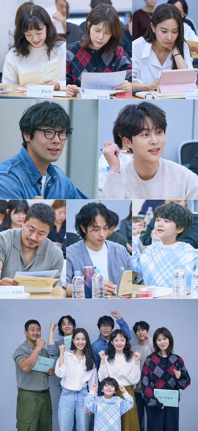 또 지송이의 위장 아들 제이 역을 맡은 윤하빈은 극중 신도시 유치원을 발칵 뒤집어놓은 영어 천재답게 유창한 영어 발음과 귀욤뽀짝한 매력으로 대본리딩 현장에 함박 웃음을 선사했다.