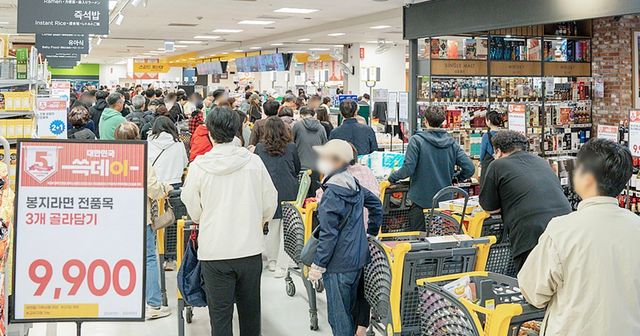 이날 이마트 매장은 '쓱데이' 행사 할인 혜택이 적용된 상품을 구매하기 위한 고객들로 붐볐다. 매장 계산대 주변에는 고객들이 결제를 위해 줄을 선 모습이 보이기도 했다.
