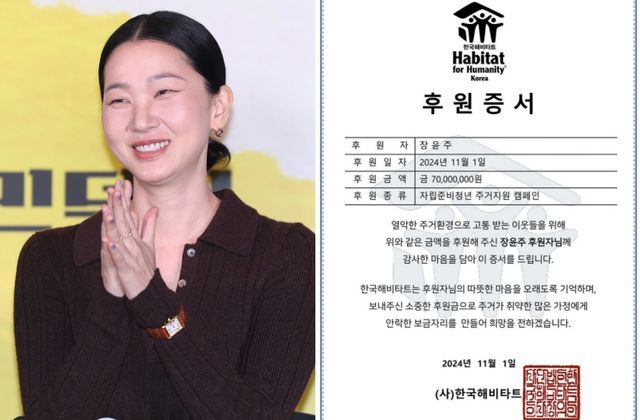 1일 장윤주는 자신의 SNS에 “자립준비청년들의 꿈을 응원합니다”라는 글과 함께 한국해비타트에 전달한 기부금의 내역이 담긴 후원증서 사진을 공개했다.