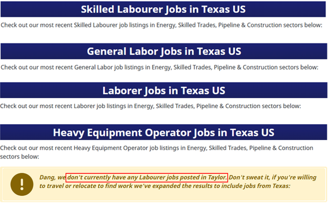 테일러시에서 부동산 중개업을 영위하고 있는 올가(Olga) 씨는 "삼성전자 외부 업체들은 팀 단위로 움직이는데 지난달에만 내가 관리하던 고객 중 무려 3팀이나 떠났다"며 "인력팀이 떠나면 4배드짜리 집을 처리하기가 매우 힘든데 이런 임대 매물이 한두 개가 아니다"고 토로했다. 이어 "테일러시 임대 시장은 사실상 삼성전자 공장 덕분에 번창한 만큼 현재 상황이 많이 좋지 않다"고 설명했다.