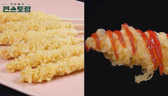 첫 번째로 소개된 레시피는 김재중의 '계란꼬치'였다. 필요한 재료는 계란 5개, 물 3큰술, 설탕 1작은술, 소금 2꼬집, 그리고 식용유다. 만드는 과정은 간단하다. 얇은 입구의 소스통에 계란과 물, 설탕, 소금을 넣고 잘 섞은 뒤, 웍에 식용유를 충분히 붓고 강불로 예열한다. 기름이 180도가 되면 계란물을 뿌리고 꼬치를 돌돌 말아준다. 솜사탕을 만드는 것처럼 조심스럽게 돌리며 모양을 잡고, 설탕이나 케첩을 뿌려 먹으면 더욱 맛있다.