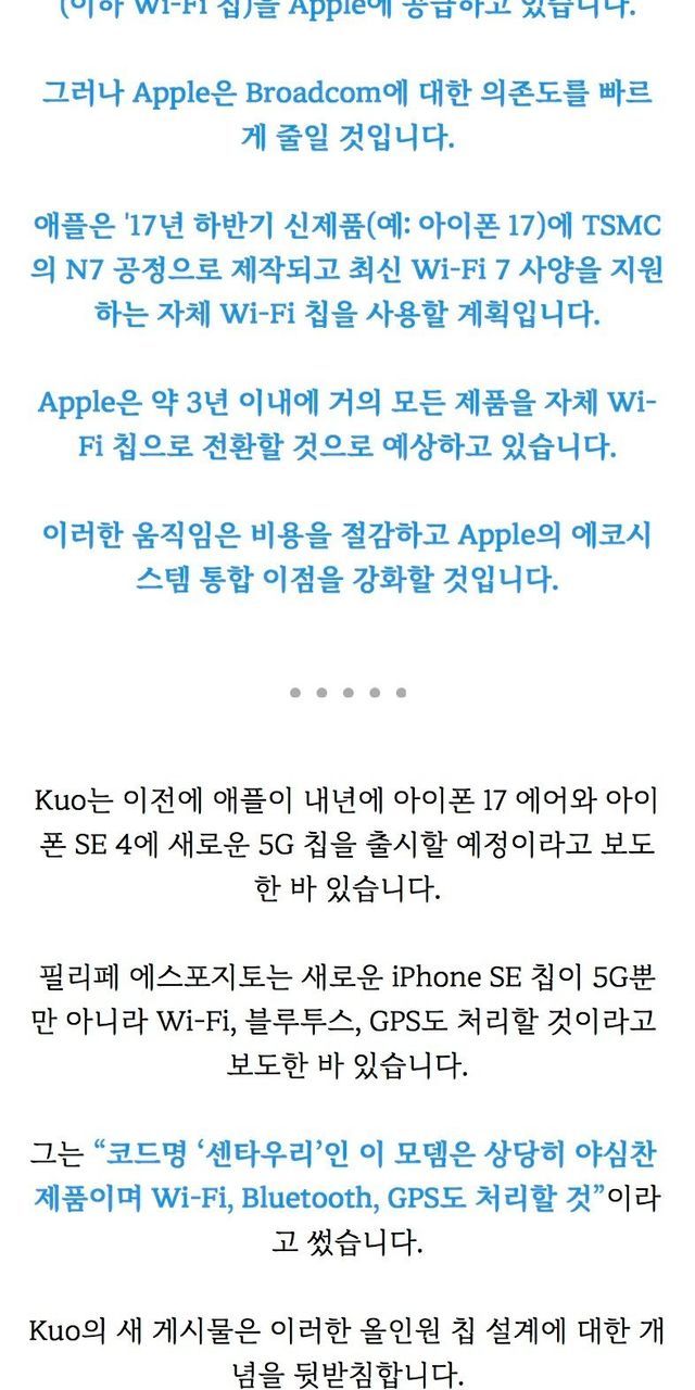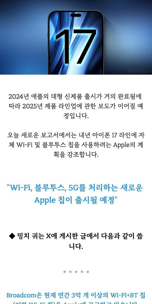 요약: 아이폰 17은 5g /wifi /bluetooth 애플이 설계한 최초 1세대모델로 출시할예정