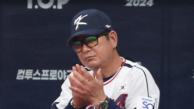 지난 1일 오후 서울 구로구 고척스카이돔에서 열린 '2024 K-BASEBALL SERIES' 대한민국 야구 대표팀과 쿠바 대표팀의 평가전, 8회초 대한민국 대표팀 류중일 감독이 박수를 보내고 있다. / 뉴스1