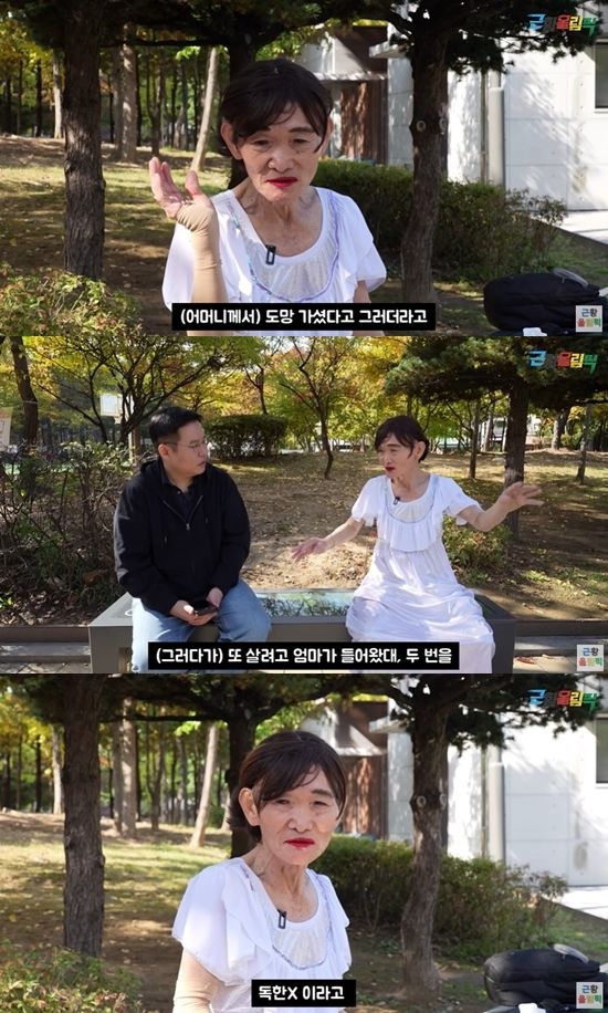 이어 "엄마를 만나 왜 우릴 버렸는지 물어봤다. 그런데 그게 아니라 우리 할아버지 때문에 도망갔다고 하더라. 할아버지가 술 마시고 며느리를 못살게 군 거다. 아버지더러 술 사오라고 보내고 그 사이에"라며 안타까운 일화를 전했다.