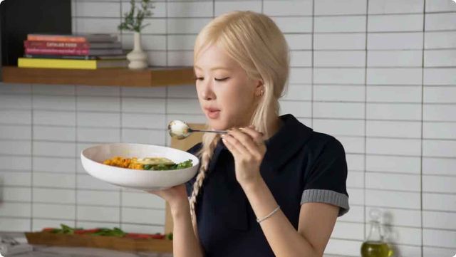 로제가 만든 볶음밥을 먹고 있다. / 유튜브 'Vogue'