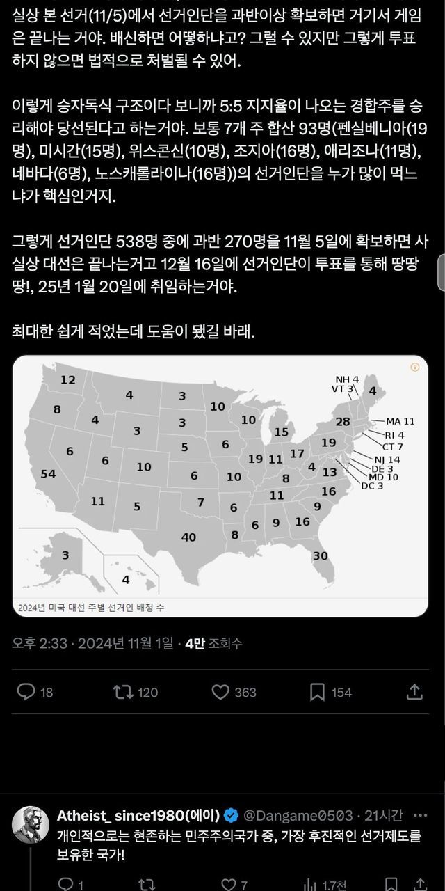 선거인단 투표에서 경합주 표 싹쓸이 당하면서 트럼프가 당선됨