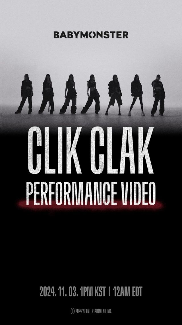 기세를 몰아 베이비몬스터는 3일 오후 1시 ‘클릭 클랙’ 퍼포먼스 영상을 처음 공개하며 인기 몰이에 불을 지핀다. 세계적 안무가인 Rie Hata, Kinjaz와 함께 완성도를 높인 데다, 아티스트에 최적화된 YG 자체 제작 시스템이 가동된 만큼 과연 어떠한 결과물이 탄생했을지 관심이 집중된다.