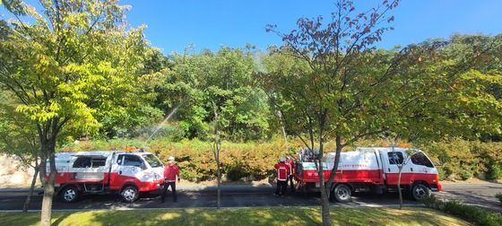 산불대응센터 및 현남분소에서도 진화차량 11대와 급수차 1대를 운영 중이다.