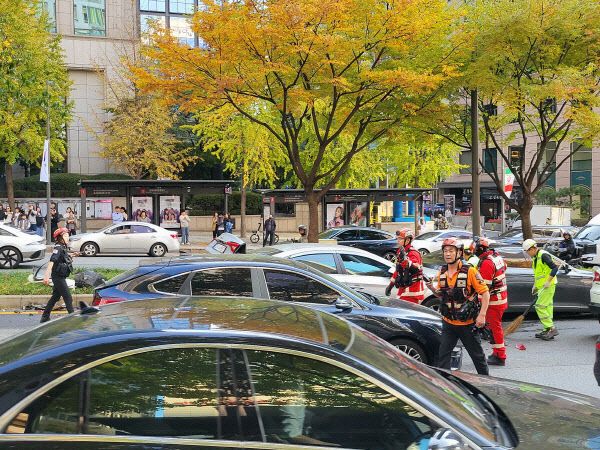 2일 경찰과 소방 당국 등에 따르면 오후 1시 42분쯤 서울 강남구 테헤란로 국기원입구에서 강남역 방향 1~3차로에서 8중 추돌 사고가 발생했다.