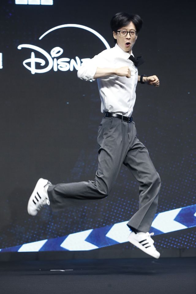 방송인 유재석이 지난 8월 6일 서울 영등포구 콘래드 호텔에서 열린 디즈니+ 오리지널 예능 ‘더 존: 버텨야 산다 시즌3’ 제작발표회에서 포즈를 취하고 있다. / 뉴스1