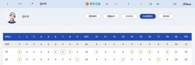 2R : 4언더파 68타(버디 4개) 합계 11언더파 133타 2위