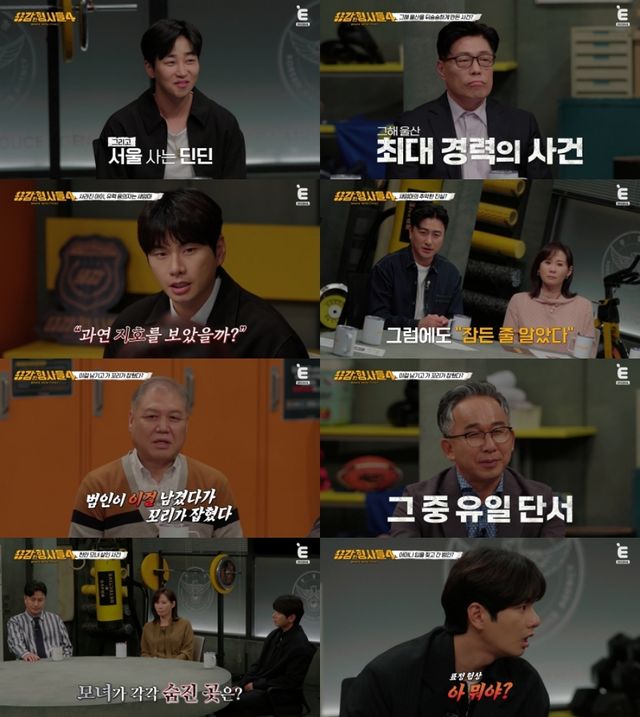 지난 1일 방송된 티캐스트 E채널 ‘용감한 형사들4’ 8회에는 울산경찰청 기동순찰대 박성윤 경감과 과학수사대(KCSI) 윤외출 전 경무관, 김진수 경감이 출연해 직접 해결한 수사 일지를 공개했다. 이날 방송에는 가수 딘딘이 게스트로 출연해 재치 있는 입담과 함께 '공감 요정'으로 활약했다.