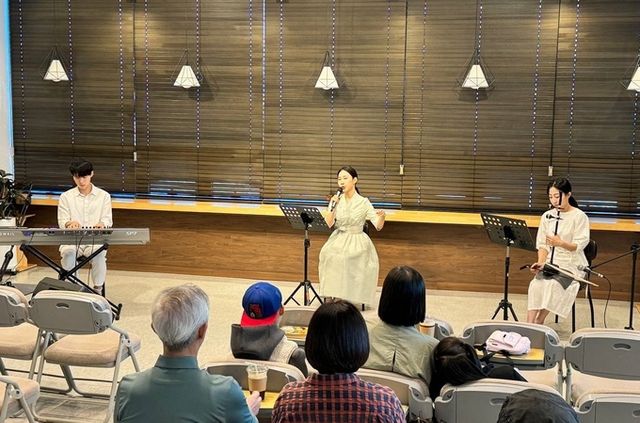토요일 오후 봉담읍에 위치한 커피향작은도서관에는 4인의 젊은 예술가들이 모인 창작국아그룹 '다붓'이 등장했다. '다붓'은 '매우 가깝게 붙어있다'는 뜻의 순우리말로 '관객 및 대중과 더 가깝게 소통하겠다'는 의미를 담았다. 전통음악의 요소가 잘 묻어난 정가와 민요로 대중들이 사랑하는 시인들의 시를 창작곡으로 묶어냈다. 이 날은 일제 강점기 대표적 저항시인인 윤동주 시인의 시들로 무대를 꾸몄다.