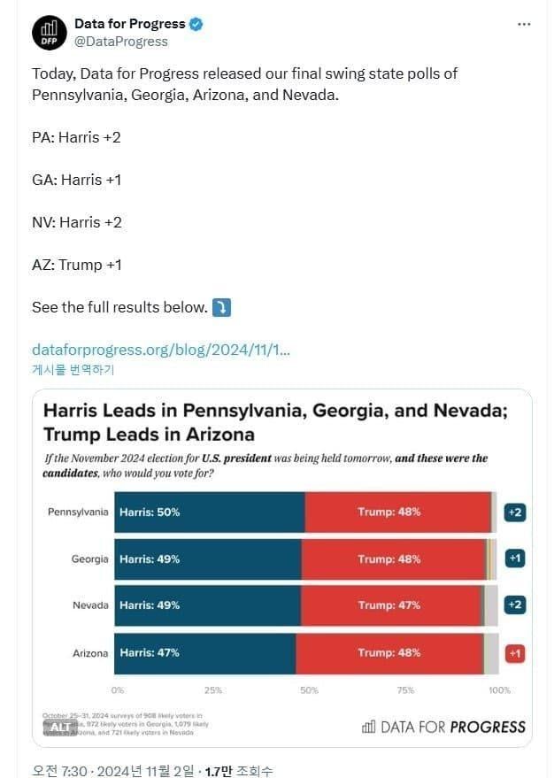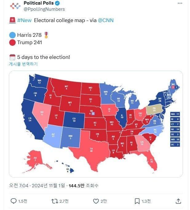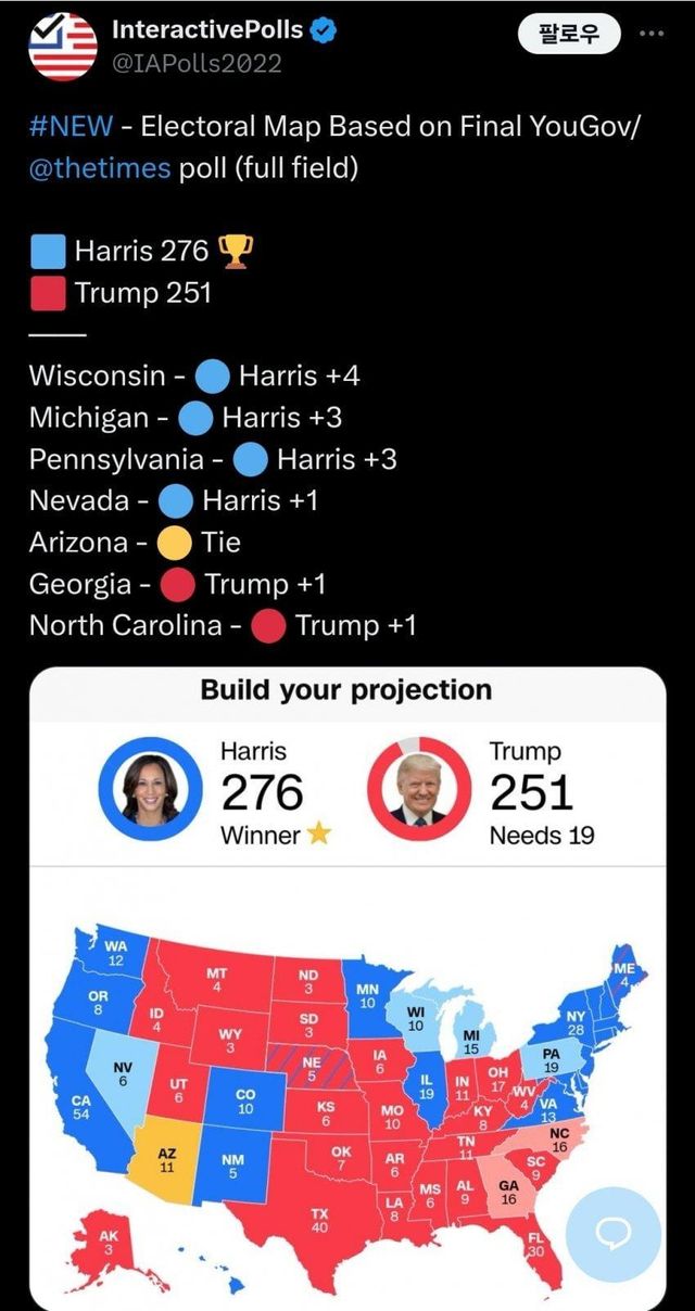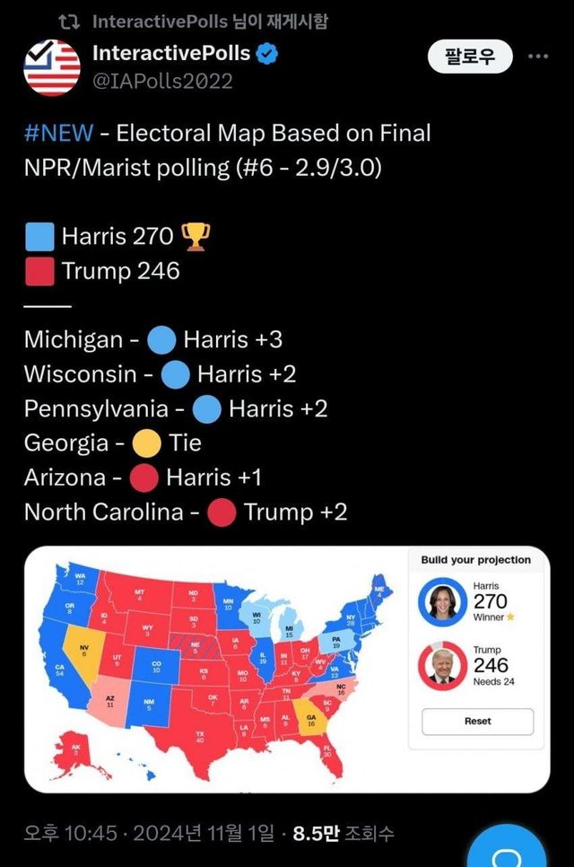 뢰도 높은 곳들은 모두 해리스 우세 하다고 오늘 조사에서 발표 했