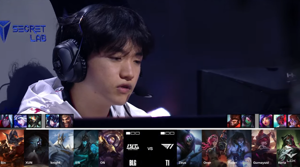 앞선 두 경기와 달리 이번에는 인베이드에서 소위 ‘사고’가 발생하지 않응며 초반이 시작된다. 초반 라인전에서 BLG는 스왑을 통해 변수를 차단하면서 초반은 부드럽게 흘러간다. 그렇다면 이 상황에서 변수는 킨드레드 스텍이다. 이를 체크한 오너는 탑 바위게를 스틸하면서 스택을 저지하자 대신 킬을 내준다. 경기 목표점을 확인할 수 있는 장면이다.